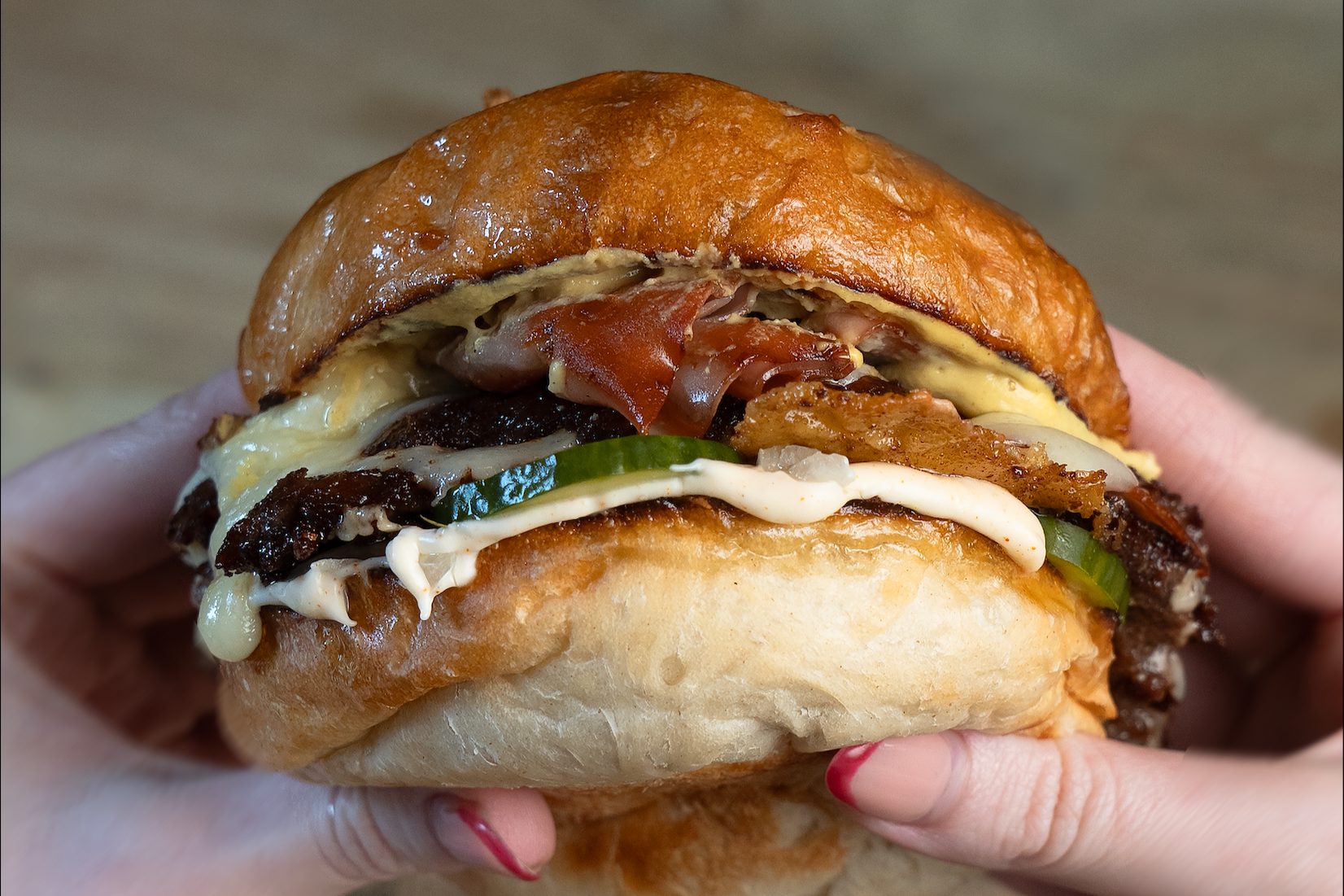 Dry Aged Beef Patty, Provolone Cheese, Crispy Mortadella, House Mayo, Dijon Mustard, DILL PICKLES, Diced White Onion.